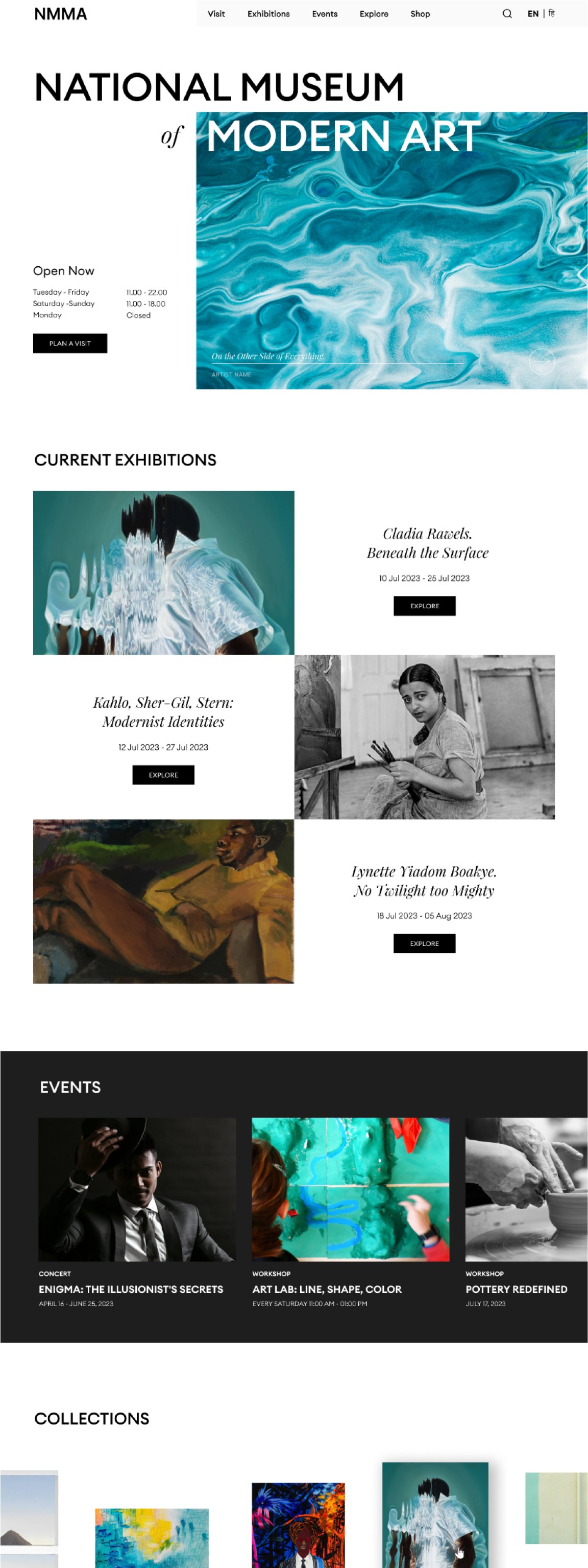 The website offers information on upcoming exhibitions and events, displays the art collection by artist, and provides helpful details for visitors to plan their visit. Its user-friendly interface allows for easy navigation and access to all necessary information.